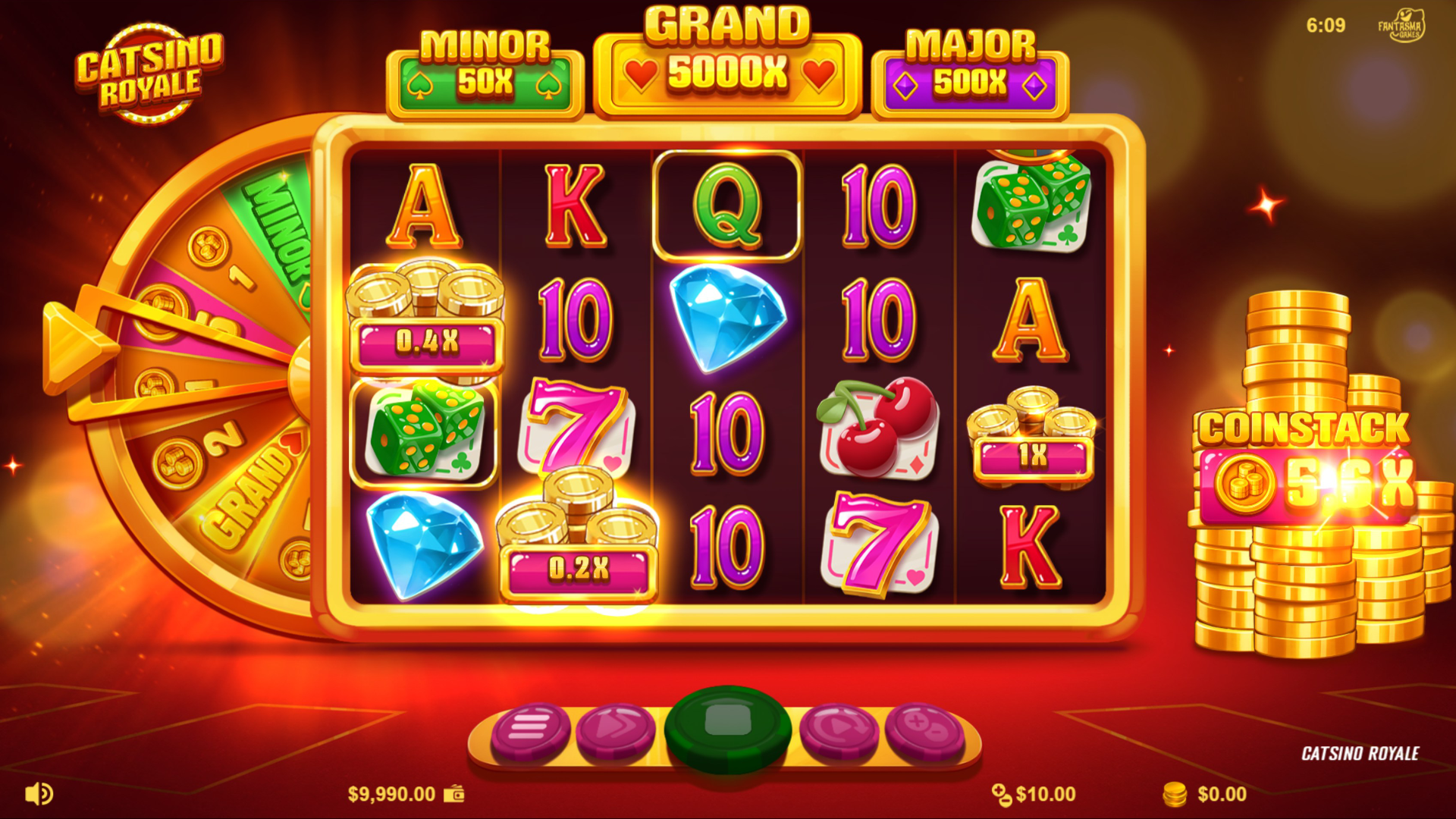 | Catsino Wheel | Awards x1, x2 or x5 Coinstack value |
