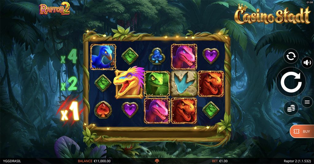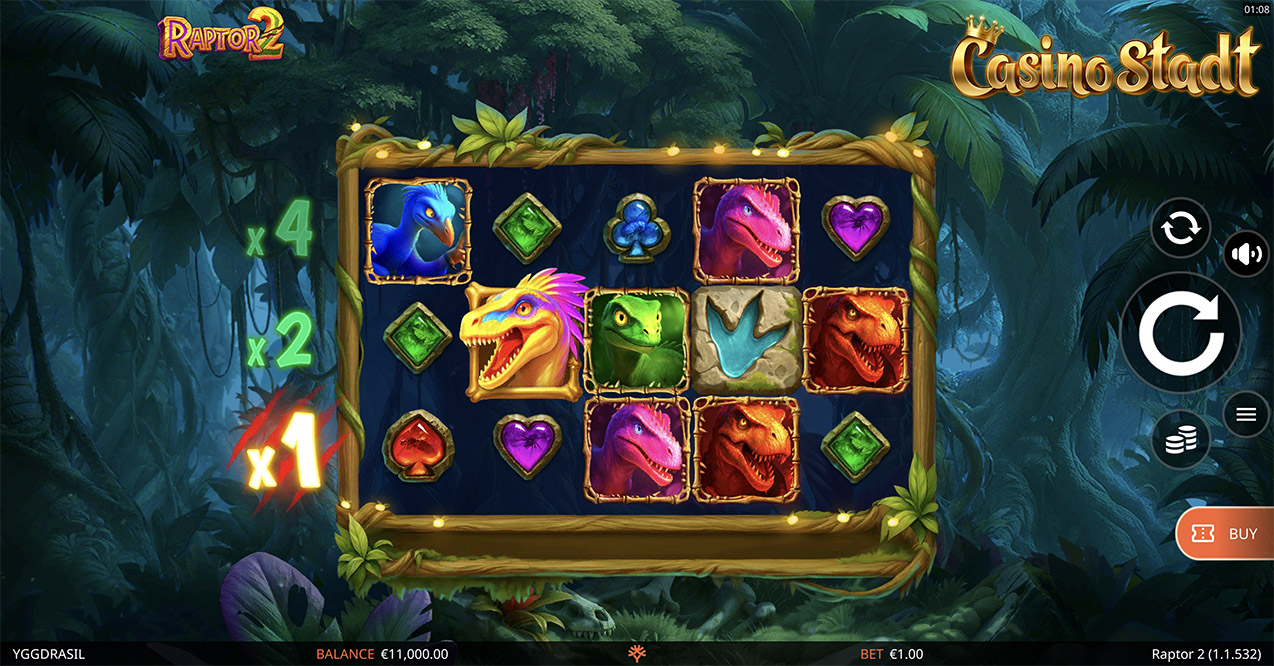 Raptor 2 DoubleMax sticks close to its roots visually, with dense jungle backdrops and animated dinosaur symbols scaled to fit the larger grids. The slot runs smoothly on desktop and mobile, offering an RTP of up to 97%, with lower settings available. For players who enjoyed the first Raptor, this sequel keeps the same teeth while giving it more room to bite.