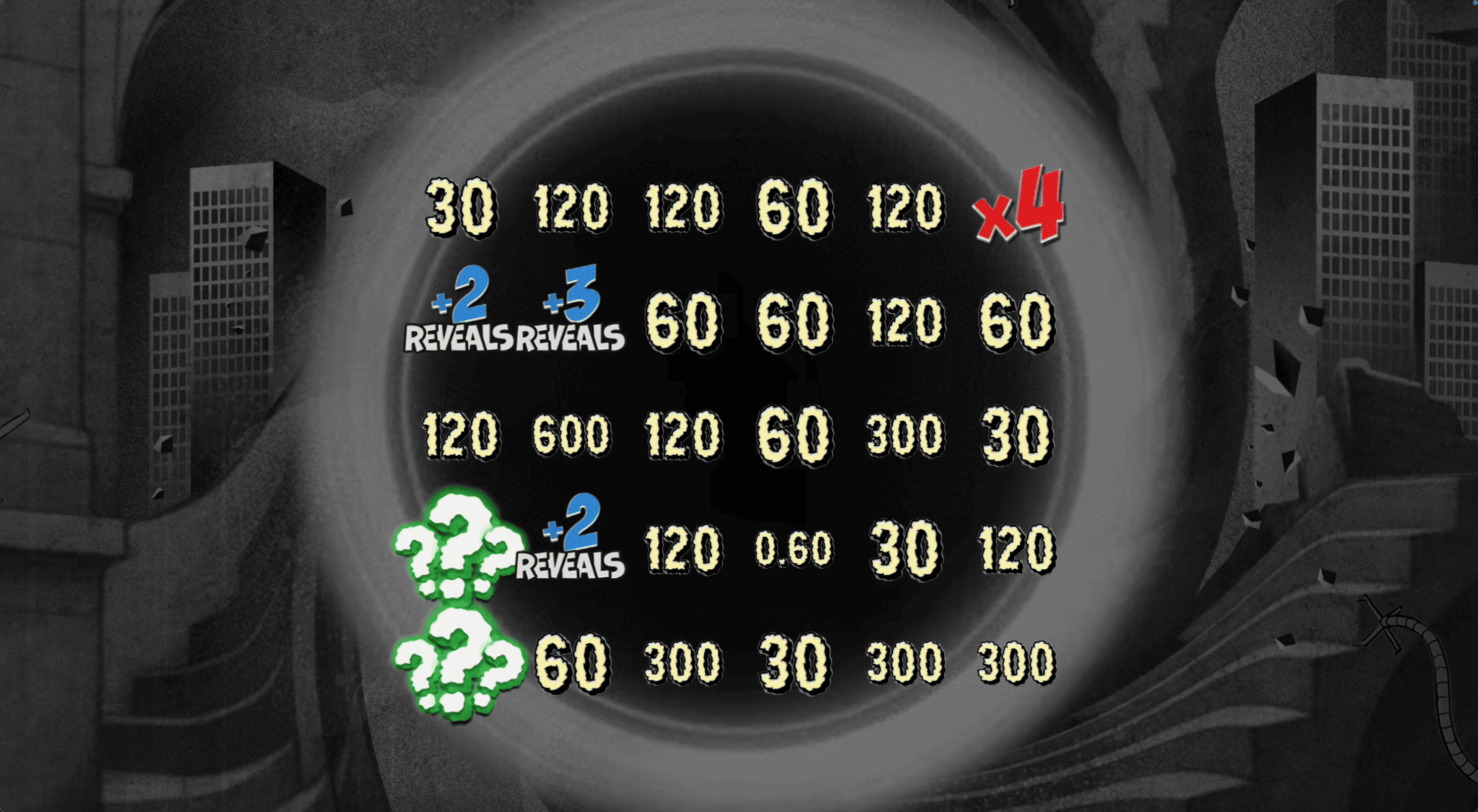 | Trinity.exe | Choose after 3 Bonus | Pick/reveal bonus on a 5×6 grid (30 positions) revealing multipliers, cash prizes, mystery symbols, and potential bonus upgrades. Can reveal a Max Win tile worth 7,777x. |